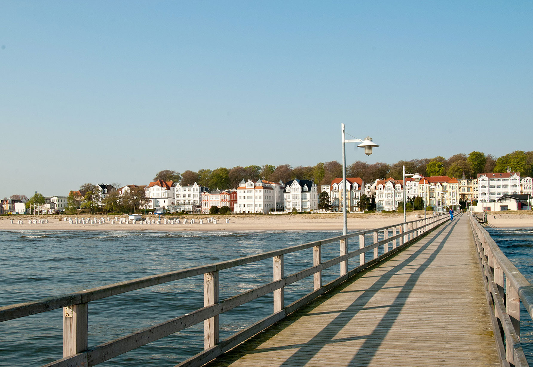 Im Osten der Insel liegen drei Kaiserbäder Ahlbeck, Heringsdorf und Bansin mit ihren feinen Stränden und der Kurpromenade.